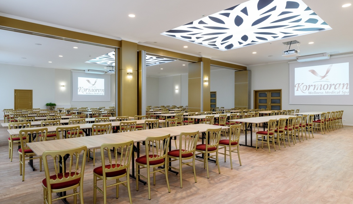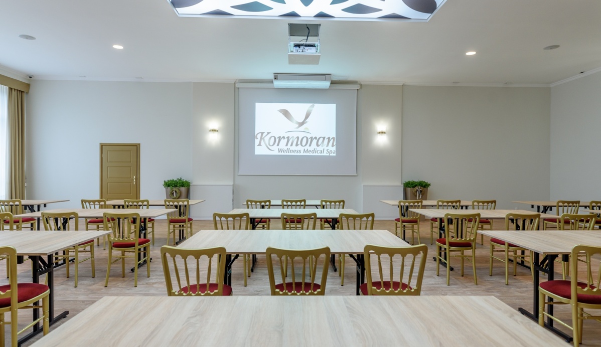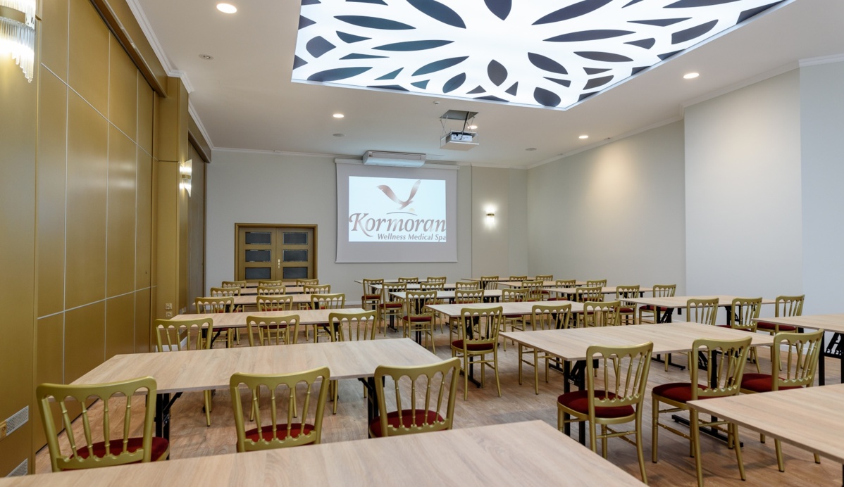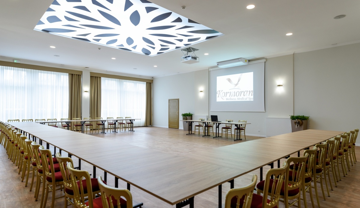 Przestrzeń konferencyjna w Kormoran MediSpa to połączenie funkcjonalności i estetyki. Do Państwa dyspozycji oddajemy 3 sale konferencyjne, o łącznej powierzchni 380 m2. Ich elegancki wystrój i naturalne światło sprzyjają koncentracji i kreatywności oraz stanowią doskonałe miejsce do organizacji zarówno małych spotkań jak i konferencji dla 240 osób.