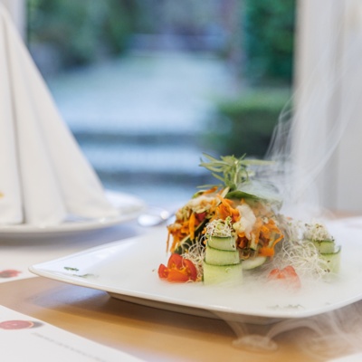 W Restauracji Ogrodowa na nowo odkryją Państwo smak tradycyjnych polskich potraw oraz dań kuchni europejskiej przygotowywanych w duchu slow food. Opracowaliśmy również menu dietetyczne, w tym dla Gości stosujących dietę owocowo-warzywną.